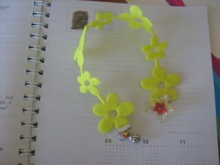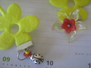 Marcador de livro. Feltro, joaninha, missangas e contas flores. Tons de amarelo. DISPONÍVEL